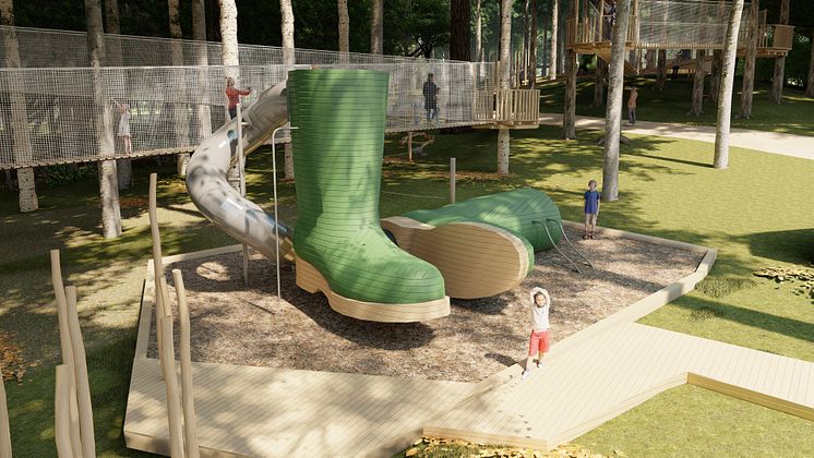 Rutschkana i form av en stövel blir en av de nya attraktionerna när det nya Barnens Sofiero invigs i maj 2022.
