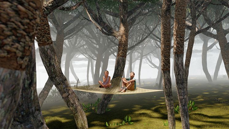 Hängmattor mellan träden är en av de nya attraktionerna när det nya Barnens Sofiero invigs i maj 2022.
