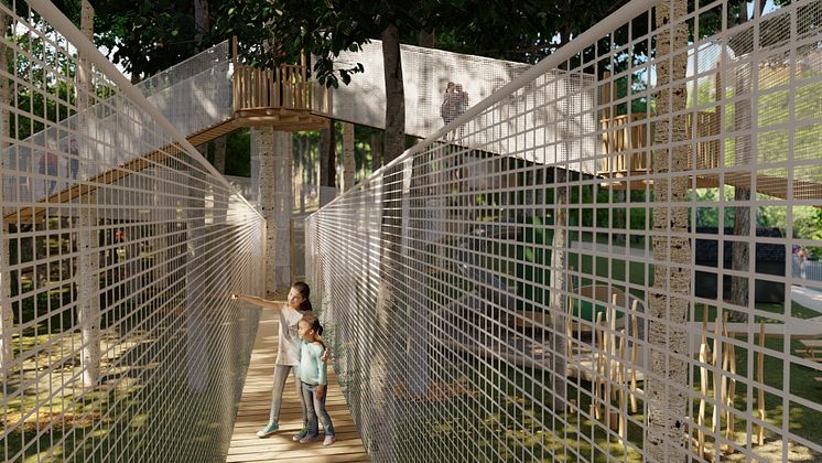 Gångbroar mellan träden är en av de nya attraktionerna när det nya Barnens Sofiero invigs i maj 2022.