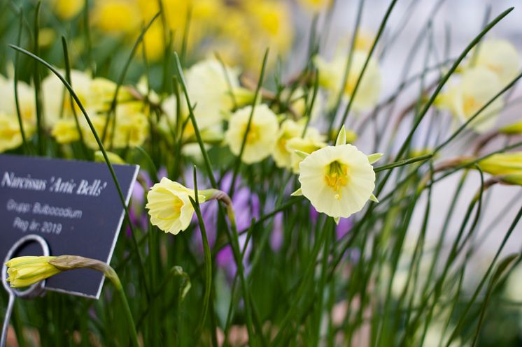 I utställningen i Vinhuset, signerad Sofieros trädgårdsmästare Sara Bratt, visas en gedigen samling miniatyrnarcisser där besökaren kan beundra deras detaljrikedom och unika variation.