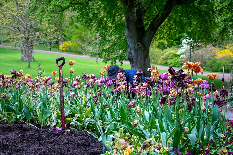 Vårfloret 2021 grävs upp och skänks till skol- och fritidsförvaltningen i Helsingborg för att planteras på stadens skolgårdar.