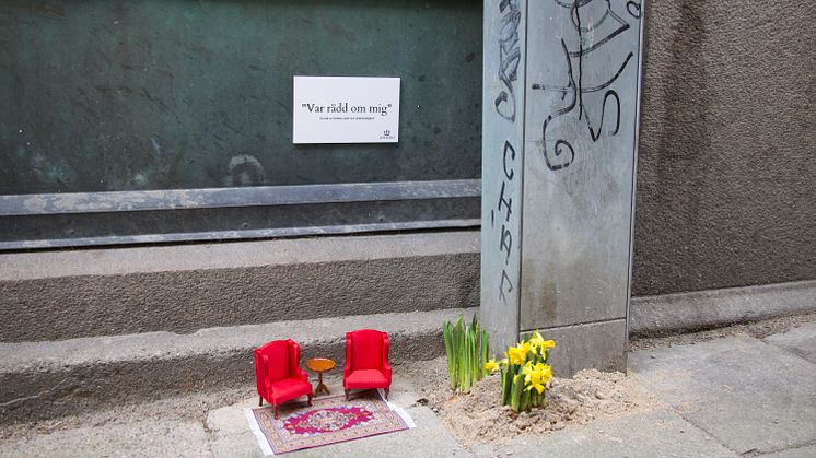 På följande fem platser i stadsrummet finns miniatyrutställningen: