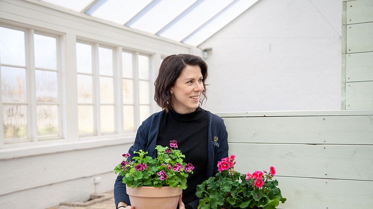 – Man kan berätta om den på olika sätt och ur många vinklar, för trots att de är så populära vet många inte så mycket om den. Både fantasten och nybörjaren kan njuta av utställningen som både erbjuder ny kunskap och något för ögat. Man kommer att både kunna se blommorna från olika vinklar, gnugga på bladen och dofta, säger Sara Bratt, Sofieros trädgårdsdesigner och skapare av utställningen Passion för pelargon.