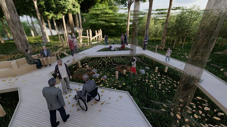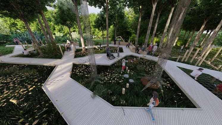 Det tillgänglighetsanpassade gångstråket väntas stå klar våren 2023. I anslutning till lekplatsen byggs även en servicebyggnad med toaletter.