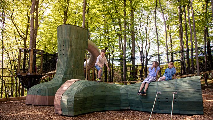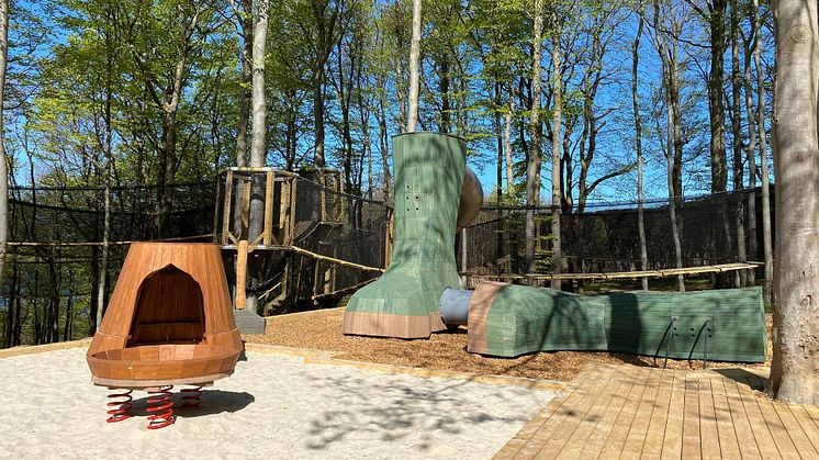 Den nya rutschkanan är formad som en fyra meter hög gummistövel. Dessutom finns det hängmattor som bjuder in till mysiga stunder.