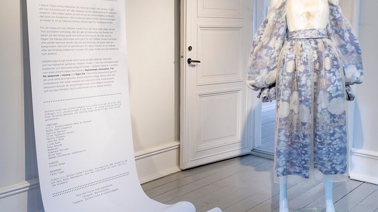 – Genom utställningens gestaltning vill vi medvetandegöra och belysa aktuella strömningar inom hållbart mode. Syftet är bland annat att få besökarna att reflektera kring sin egen relation till sina kläder, säger Ulrika Kyaga, utställningens kurator.