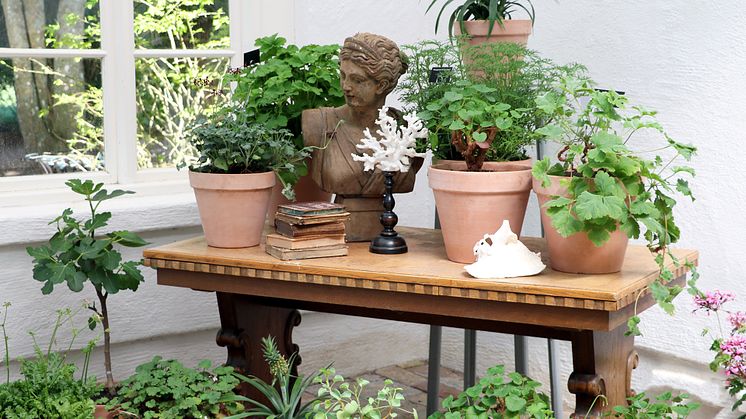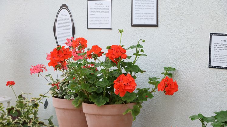 Sommarens utställning är skapad tillsammans med POM, programmet för odlad mångfald. De har samlat in ett kulturhistoriskt växtmaterial som kan spåras långt tillbaka i tiden. I utställningen får besökarna ta del av små spännande historier om hur pelargonplantor har ärvts i generationer och finns bevarade än idag.