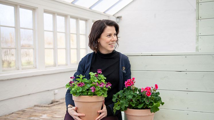 – Trots att pelargonen är så populär vet många inte så mycket om den. Både fantasten och nybörjaren kan njuta av utställningen som både bjuder på ny kunskap och något vackert för ögat, berättar Sara Bratt.
