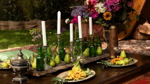 – Vinhuset är otroligt vackert och fridfullt. Här dukar jag upp ett bord med formklippt myrten, kamelior i gamla lerkrukor och olivträd som får dansa fram på bordet i olika nivåer. Det blir rustika gjutjärnskrukor, vintage och antikviteter i fina material blandat med vackra återbruksglas från Marocko. Det är produkter som har en själ, vilket passar helt rätt på en plats som Sofiero.