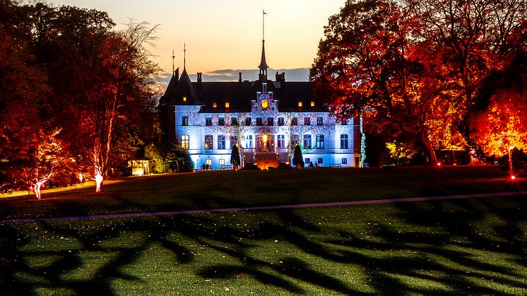 När höstmörkret sänker sig tänds ljusen på Sofiero. Nytt för i år är att slottsparken är vackert upplyst under tre oktoberveckor. Biljetterna förköps på Sofieros webbplats.