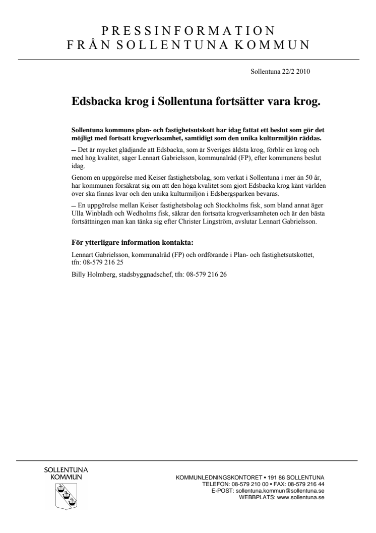 Sollentuna kommuns plan- och fastighetsutskott har idag fattat ett beslut som gör det möjligt med fortsatt krogverksamhet, samtidigt som den unika kulturmiljön räddas.