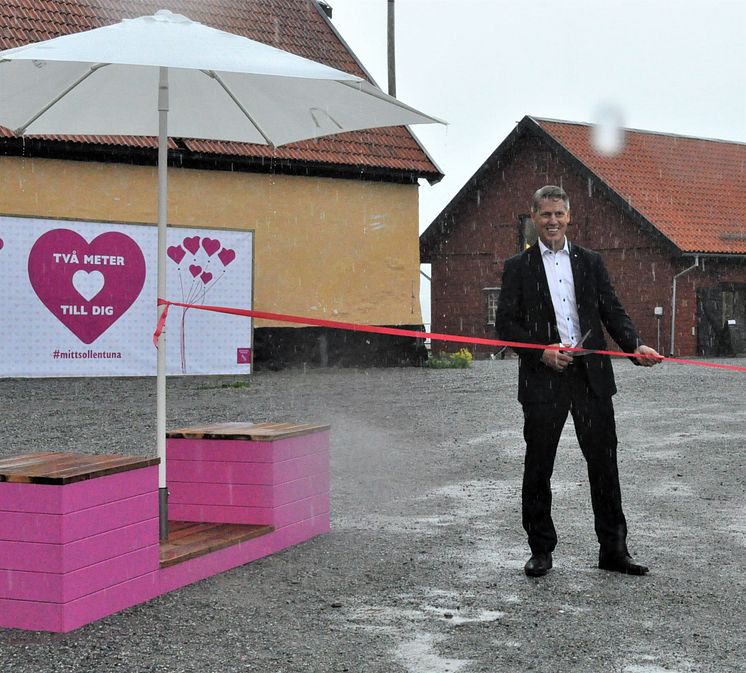 Henrik THunes (M) inviger kampanjen "Två meter kärlek till dig" på Stallbacken i Sollentuna