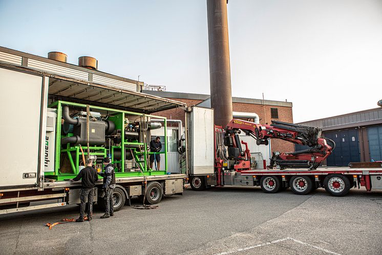 Leverans av ORC-turbin vid anläggningen i Svenljunga