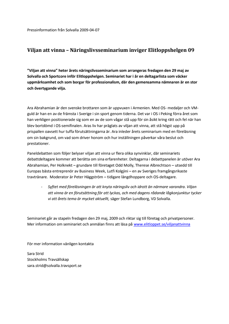 Efter att styrelsen i Stockholms Travsällskap ställde sina platser till förfogande och avgick i samband med årsmötet den 27 april 2010, har Solvalla upprättat en administrativ styrgrupp som förutom Tore Fyrand består av STC:s generalsekreterare Ulf Hörnberg och ATGs vice VD Benno Eliasson