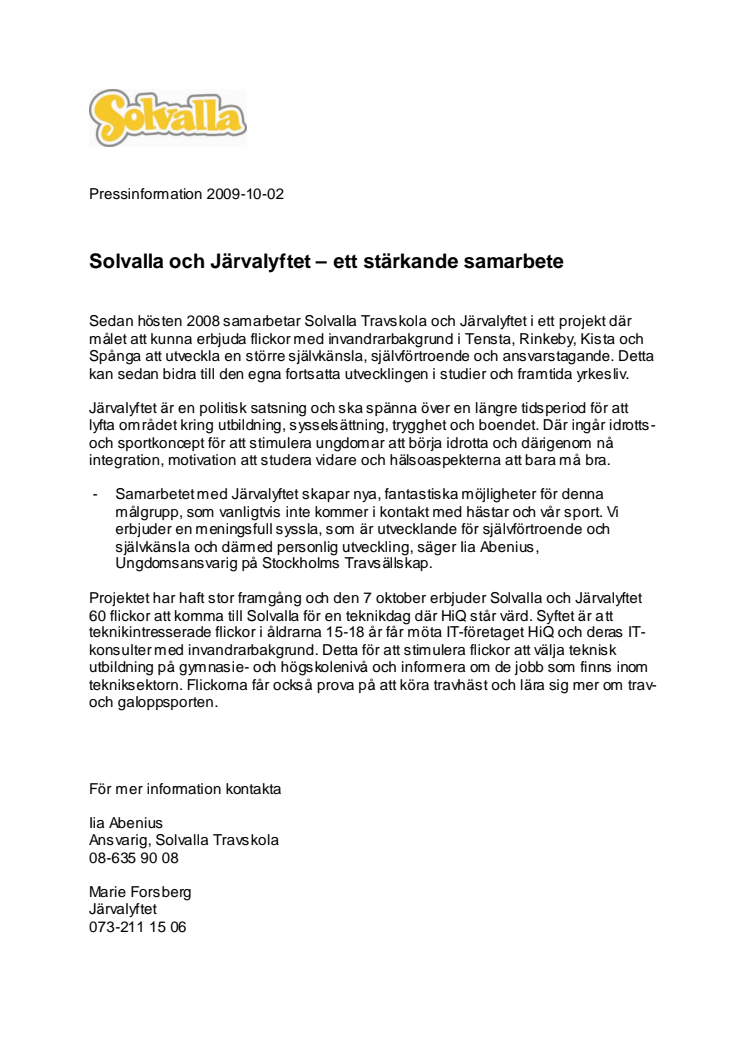 Solvalla och Järvalyftet – ett stärkande samarbete