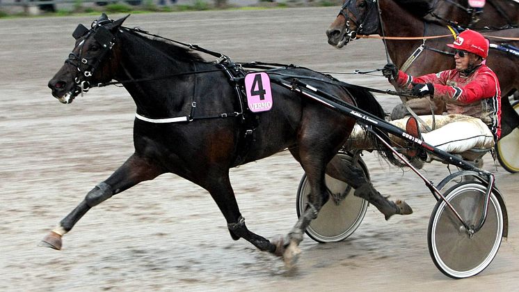 Jorma Kontio satt i sulkyn i Finlandia Ajo förra helgen när hästen rekordsänkte till 1.10,2 efter att ha dragit upp tempot i ledningen och passerats av D.D´s Hitman, Propulsion och Twister Bi i sista stund.