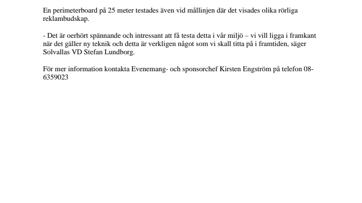 En perimeterboard på 25 meter testades även vid mållinjen där det visades olika rörliga reklambudskap.