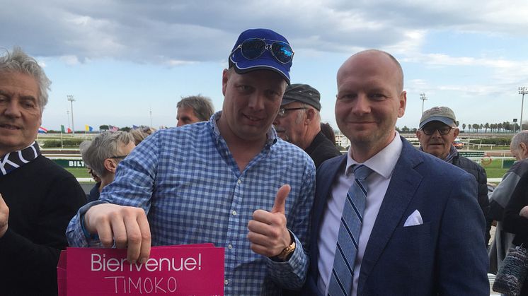 Det ropade Timokos tränare Richard Westerink när han fick inbjudan till Elitloppet i vinnarcirkeln på Cagnes-Sur-Mer.