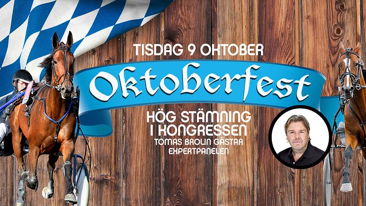 Den 9 oktober är det trav- och oktoberfest i Restaurang Kongressen på Solvalla. Fotbollshjälten Tomas Brolin är en av gästerna och han tar även plats i Expertpanelen.
