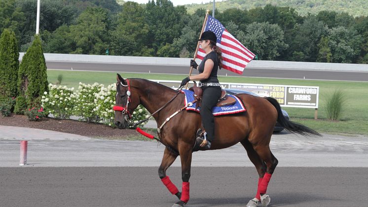 Wendy Ross, 32, och hästen Floyd. Där har ni det okända ekipaget som kommer finnas med under Elitloppet Benders. - Det är en ära att få flyga hit från USA och vara outrider på Solvalla, säger hon.