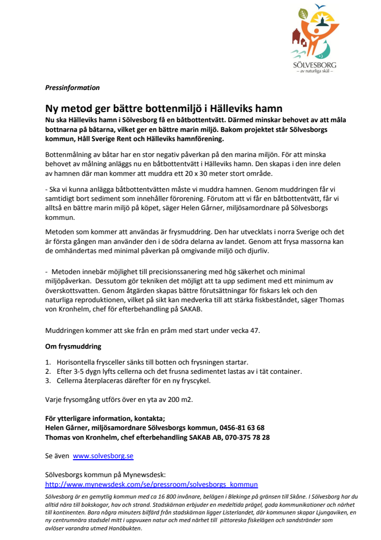 Nu ska Hälleviks hamn i Sölvesborg få en båtbottentvätt. Därmed minskar behovet av att måla bottnarna på båtarna, vilket ger en bättre marin miljö. Bakom projektet står Sölvesborgs kommun, Håll Sverige Rent och Hälleviks hamnförening.