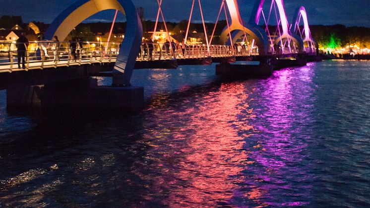 Europas längsta gång- och cykelbro är nu officiellt invigd. Det blev en riktig folkfest när Sölvesborgsbron igår firades med massor av aktiviteter, pompa och ståt. Sent på kvällen tändes också för första gången den spektakulära brobelysningen.