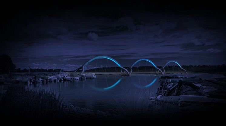 Den 756 meter långa bron kommer när den är färdigbyggd sammanfoga den nya stadsdelen Ljungaviken med Sölvesborgs stadskärna. Kommunen har anlitat Ljusarkitektur AB för att ta fram ett förslag på ljussättning.