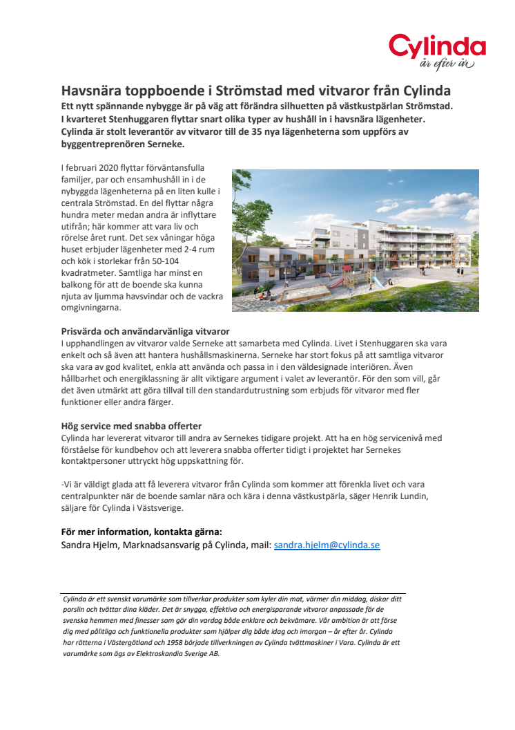 Ett nytt spännande nybygge är på väg att förändra silhuetten på västkustpärlan Strömstad. I kvarteret Stenhuggaren flyttar snart olika typer av hushåll in i havsnära lägenheter. Cylinda är stolt leverantör av vitvaror till de 35 nya lägenheterna som uppförs av byggentreprenören Serneke.