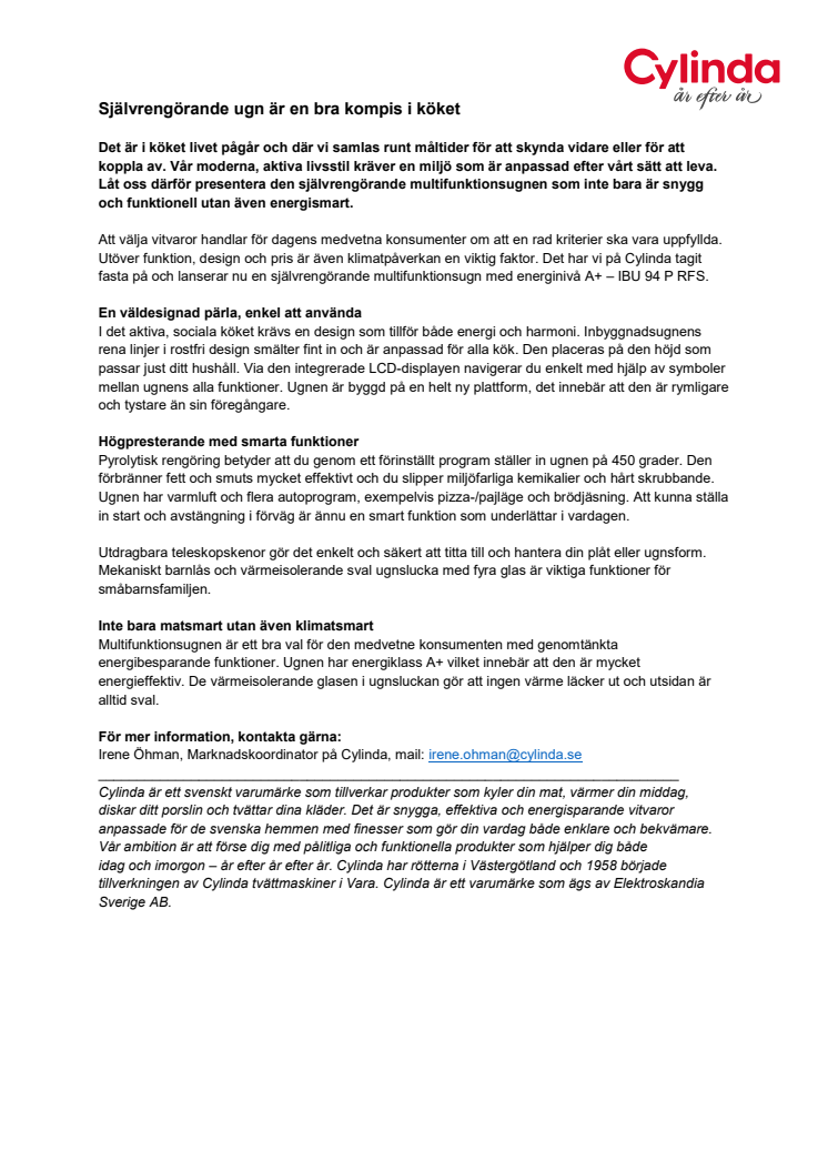 Det är i köket livet pågår och där vi samlas runt måltider för att skynda vidare eller för att koppla av. Vår moderna, aktiva livsstil kräver en miljö som är anpassad efter vårt sätt att leva. Låt oss därför presentera den självrengörande multifunktionsugnen som inte bara är snygg och funktionell utan även energismart.