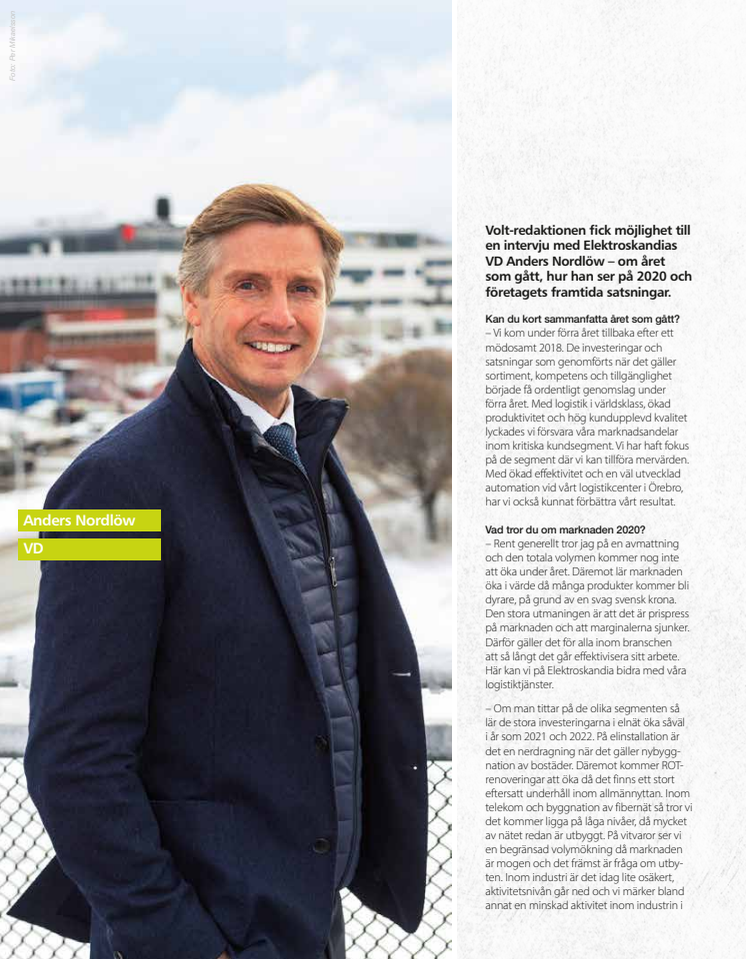 Volt-redaktionen fick möjlighet till en intervju med Elektroskandias VD Anders Nordlöw – om året som gått, hur han ser på 2020 och företagets framtida satsningar.