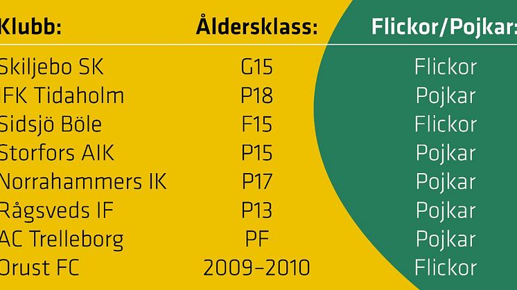 De åtta fotbollslag som får 10 000 kronor vardera i sponsring av Elektroskandia utsågs i maj. Totalt fick Elektroskandia in 45 ansökningar att ta ställning till. Förutom att få en rättvis spridning över hela landet samt ålder och kön har den interna juryn lagt stor vikt vid hur man motiverat varför just deras lag ska få pengarna. En parameter som vägt tungt är att lagen i sin motivering uttryckt att man arbetar för och har fokus på en eller flera av de frågor och globala mål som Elektroskandia och Gothia Cup arbetar för: God hälsa och välbefinnande, Jämställdhet, Minskad ojämlikhet, Bekämpa klimatförändringarna.