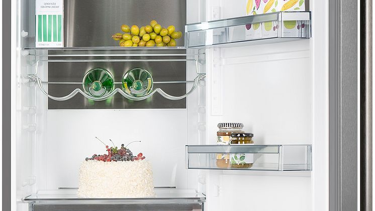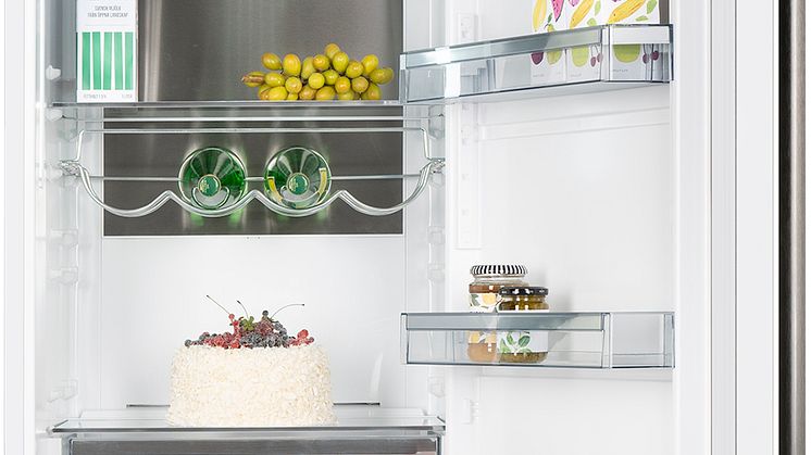 Om storleken på en förpackning kräver det så kan du enkelt justera avstånd och göra mer plats. Ett reglage flyttar dörrhyllan i kylen upp och ned för att anpassa höjden. Det går även att skjuta ihop en glashylla i skåpet av samma anledning.