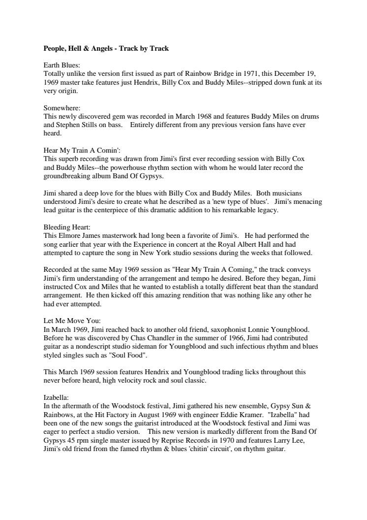 Låtlista - "People, Hell & Angels"