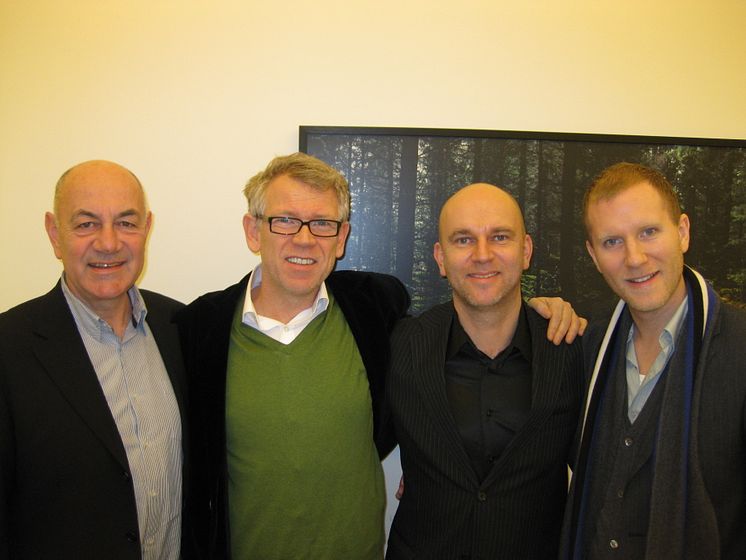 Från vänster i bild: Hasse Breitholtz, (VD Sony Music Sverige), Torbjörn Sten (Mr Radar), Per Lindholm (Mr Radar), Daniel Larsson (Mr Radar)
