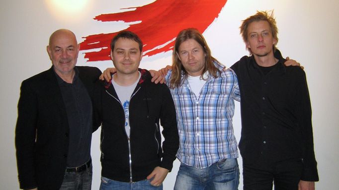 På bilden från vänster: Hasse Breitholtz (VD Sony Music), Markus Tagaris (Gain), Magnus Lundbäck (Gain), Mats Hidegård (Business & Legal Affairs Sony Music).