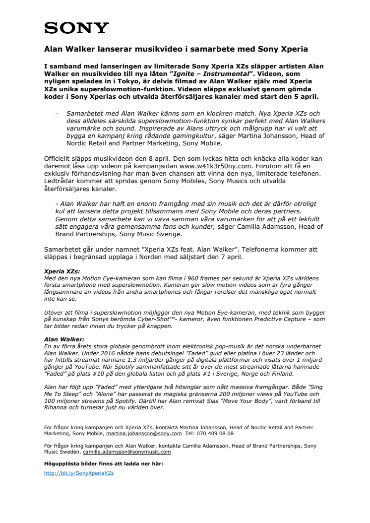 • Alan Walker lanserar musikvideo i samarbete med Sony Xperia
