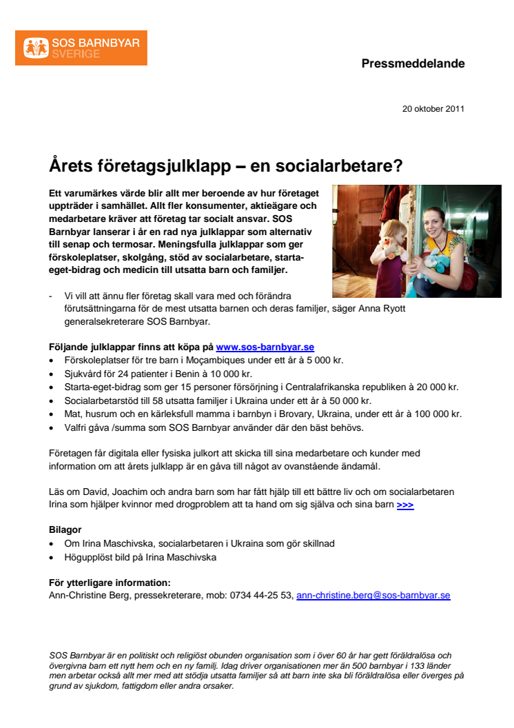 Ett varumärkes värde blir allt mer beroende av hur företaget uppträder i samhället. Allt fler konsumenter, aktieägare och medarbetare kräver att företag tar socialt ansvar. SOS Barnbyar lanserar i år en rad nya julklappar som alternativ till senap och termosar.