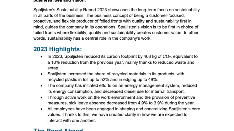 • Spaljisten Sustainability Report PM ENG