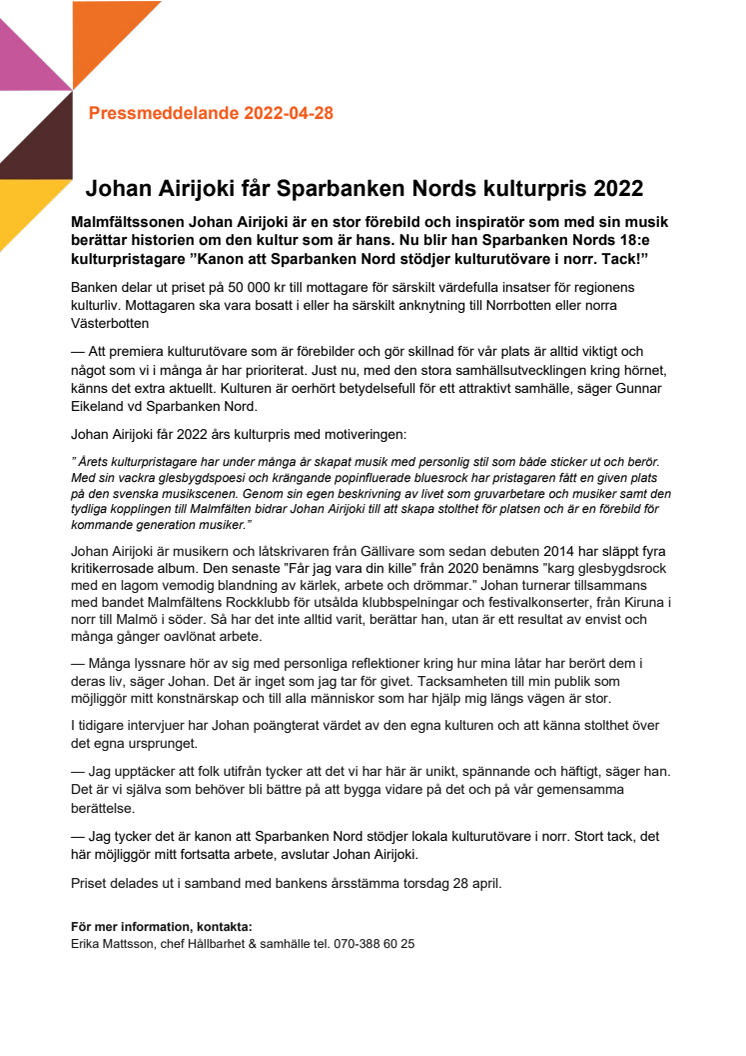 Innehållet får laddas ner, användas och delas i olika mediekanaler av t.ex. journalister, bloggare, krönikörer, opinionsbildare etc., i syftet att förmedla, redogöra för och kommentera ert pressmeddelande, inlägg eller information, så länge innehållet används oförändrat och i dess helhet. Upphovsmannen ska anges i den omfattning och på det sätt god sed kräver (vilket bl.a. innebär att fotografer till bilder nästan alltid måste anges).