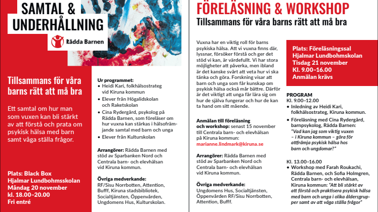 Läs mer om evenemanget i Kiruna på Rädda Barnen Norrbottens facebooksida