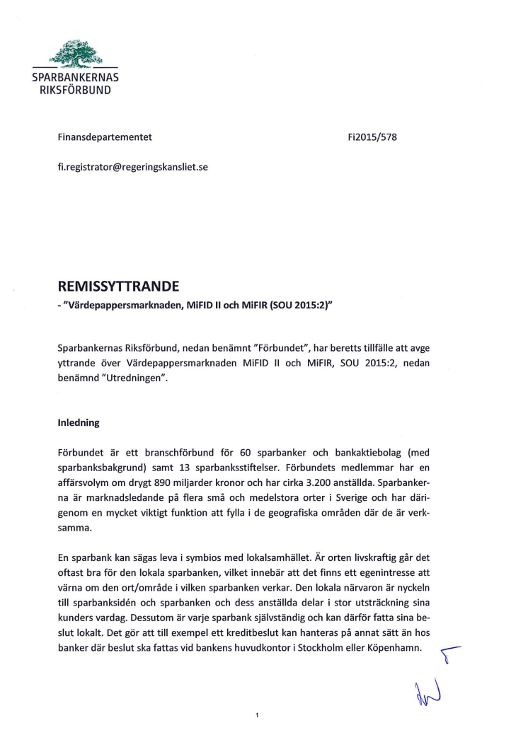 Redan i maj 2015 lämnade vi in ett remissyttrande till Finansdepartementet, om ett svenskt förslag om provisionsförbud. Vi beskrev tydligt att förslaget inte kommer att gynna bankkunderna. De skäl som vi då anförde mot ett förbud, är relevanta även idag. Bland andra Konsumentverket och Finansinspektionen var för förslaget, medan Konkurrensverket, Sparbankernas Riksförbund och flera andra aktörer var emot förslaget.