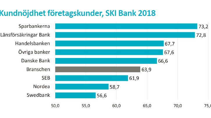 Senaste åren har kundnöjdheten i genomsnitt gått ner, men nu ser det ut som botten är nådd och kundernas förtroende är på väg upp. Även sparbankerna som grupp har fått bättre resultat i år jämfört med förra året, 72,2 (70,2 förra året) av privatkunder och 73,2 (68,9 förra året) av företagskunder.