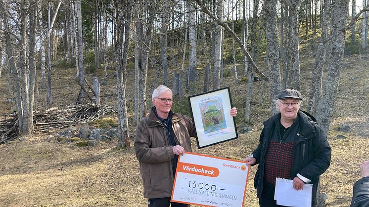 Arbetsdagen i Källslätten inledde med sol och ett välkommet stipendium. Källslättenföreningen till delades Sparbaksstiftelen Dalarnas Lokala Stipendium på 15 000 kronor. På plats i Källslätten var Alf Tangenäs och Göran Andersson för att dela ut stipendiet.
