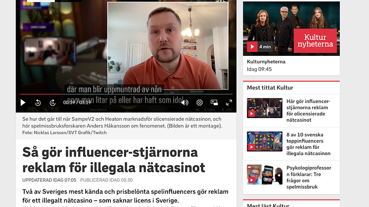 • SVT granskar influencers reklam för illegala nätcasinon
