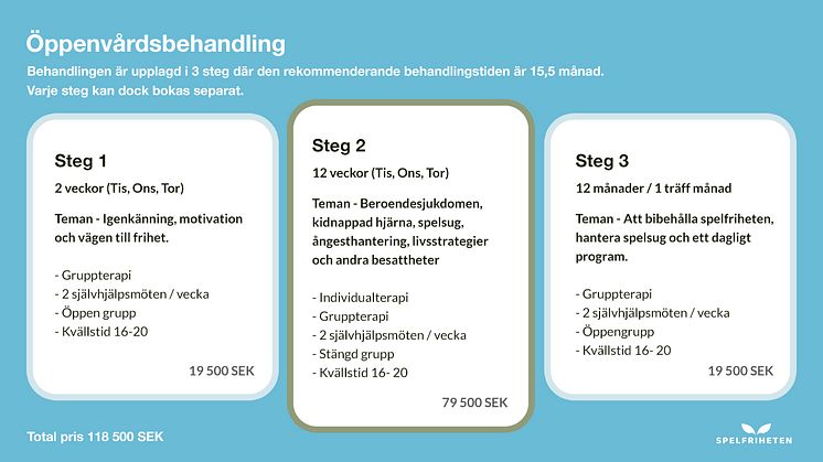 Varje dag utan rätt sorts hjälp är en balansgång på slak lina och risken att förvärra problemet är överhängande. Därför har vi nu delat upp vår öppenvårdsbehandling i tre steg, allt för att det ska gå snabbare och enklare att påbörja resan mot spelfriheten.