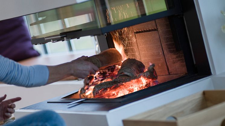 Modellen Visio är en av de allra populäraste RAIS-kaminerna. Den utmärks av sin stora glasfront, som öppnas uppåt och ser ut att försvinna. På så sätt kan man även njuta en stund av en öppen eldstad.