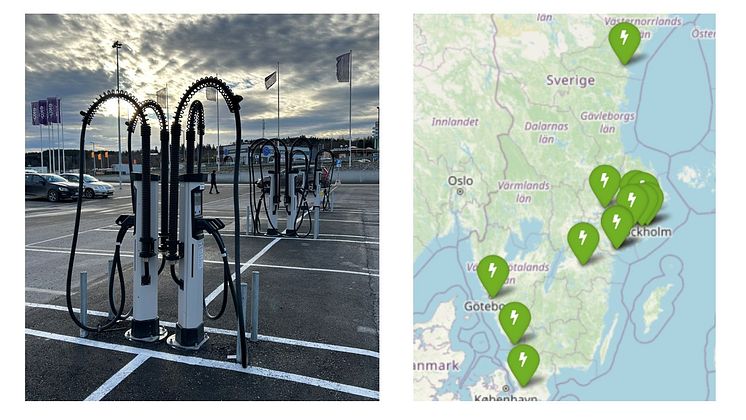 - Förarvägen 10, Sundsvall – 8 laddstolpar (16 laddpunkter), 150 kW
