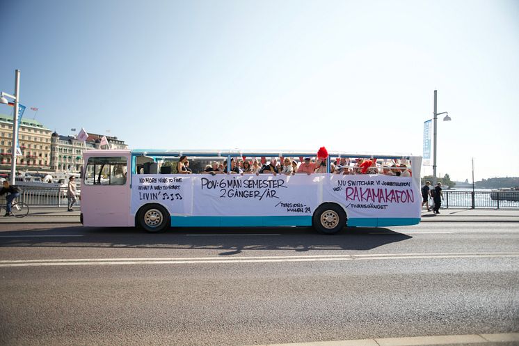 Igår, 29 augusti, arrangerade SPP sitt nya initiativ Pensionspremiären med ett stort firande för årets pensionskull. Festen började med att en partybuss körde runt nyblivna pensionärer på Stockholms gator och avslutades med att nästan 400 nyblivna pensionärer intog Stureplan och firade övergången till en ny fas i livet.