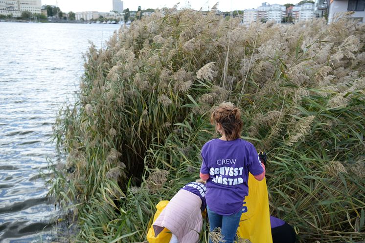 Vilket skräp lurar i vassen? Deltagare i Schysst Sjöstad 2018 plockar det de hittar.
