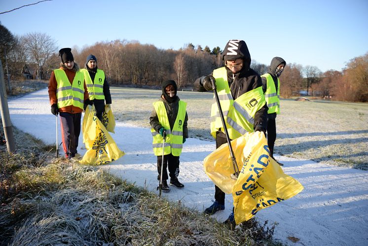 Nyfallen snö och frost var inget hinder när Alby Cricket Club 30-årsstädade med Städa Sverige.